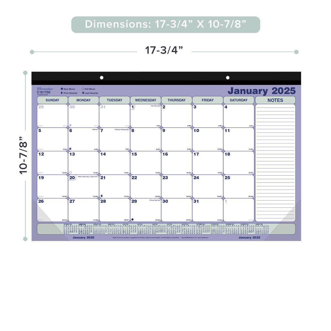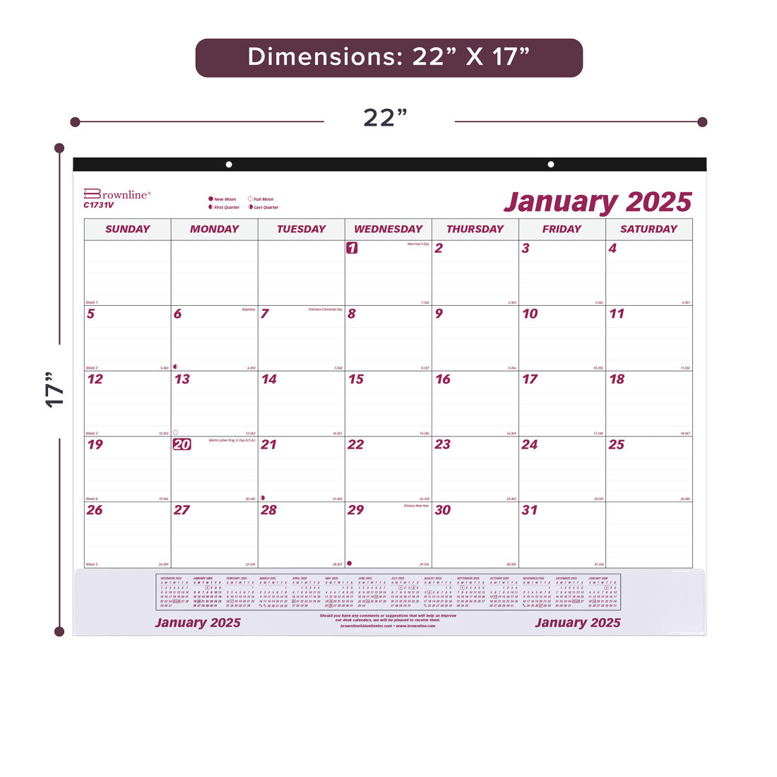 2025 Brownline C1731 Desk Pad Calendar, 17 x 22″, January through